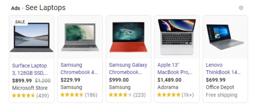 The shopping campaign ads allow businesses to showcase their products on the SERP. When someone searches for a product you sell, your ad will appear on the SERP with an image of the product, the price, and other relevant information.