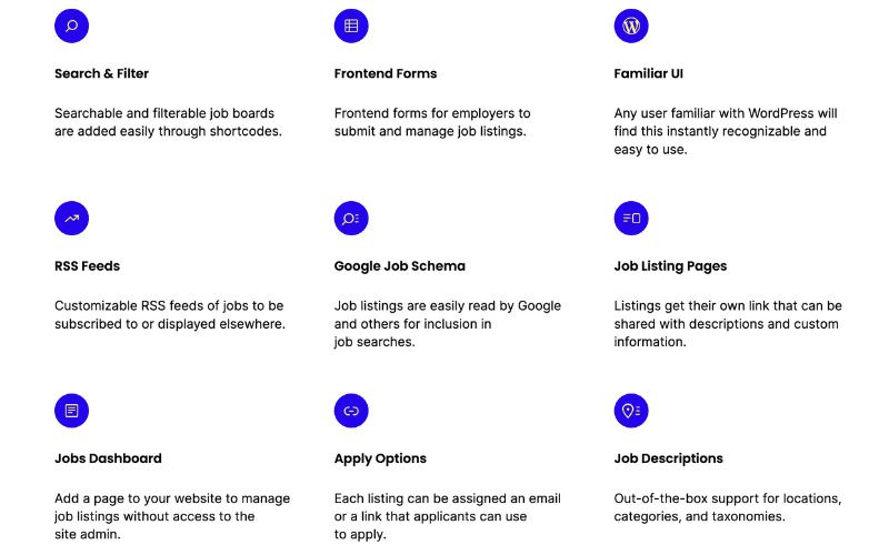 - Add, manage, and categorize job listings using the familiar WordPress UI
