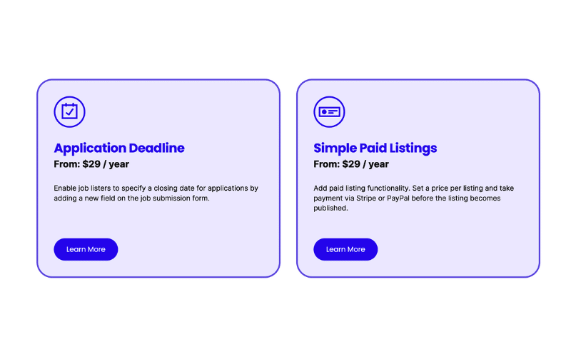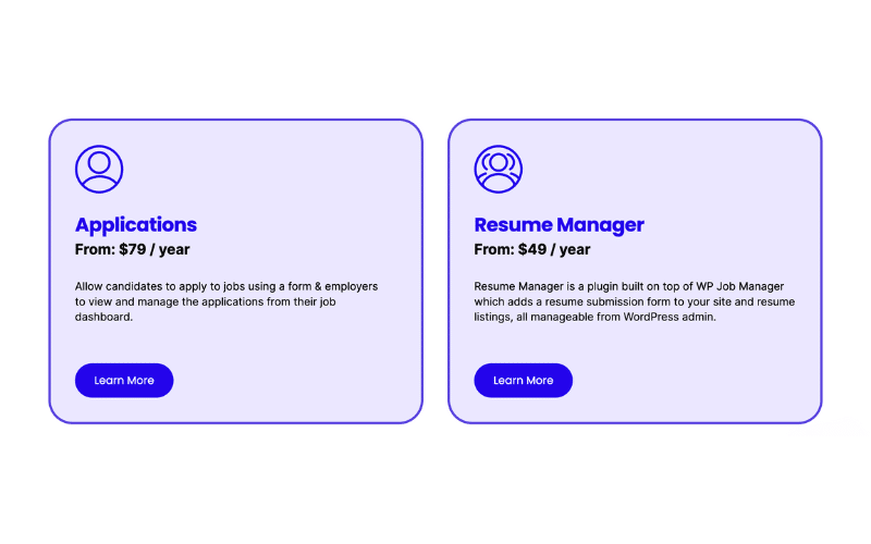 WP Job Manager offers a variety of add-ons to extend its core functionality, making it easier for businesses to tailor the job management process to their unique needs. Here are some popular add-ons to consider: