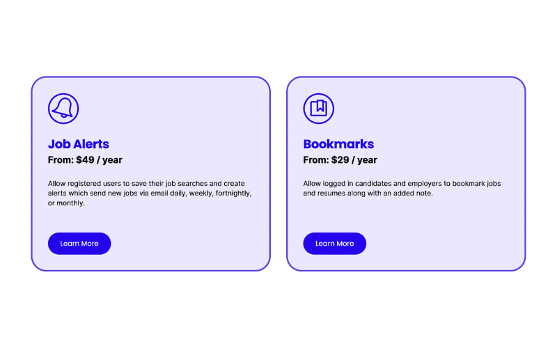 - Bookmarked Jobs: Allow users to save job listings they're interested in with the Bookmarked Jobs add-on. This feature enhances user experience by enabling potential candidates to keep track of opportunities that catch their eye, encouraging repeat visits to your job board.