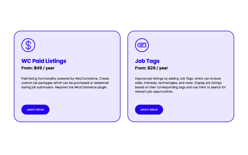 - WC Paid Listings: Monetize your job board with the WC Paid Listings add-on, which integrates WP Job Manager with WooCommerce. This add-on offers businesses the ability to charge for job listings, providing a viable revenue stream and flexible pricing options.