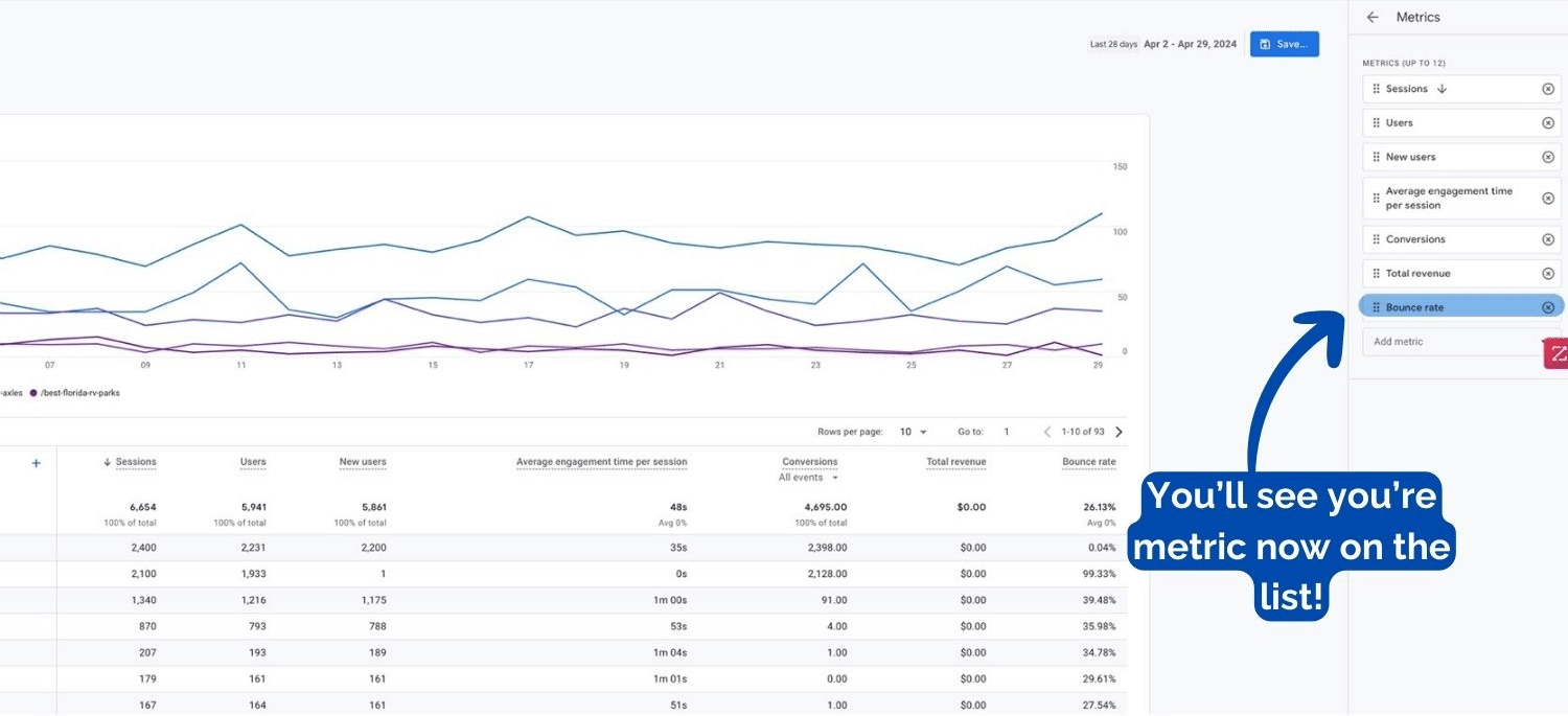 And that's it! You've successfully added the Bounce Rate metric to your GA4 report.