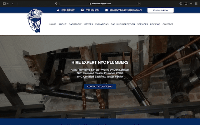 Atlas Plumbing NYC's website is designed to be professional, modern, and clean. This plumbing website possesses a blue and white color scheme and features fantastic supporting graphics, smooth animation, a sticky header with an amazing slider. Atlas Plumbing NYC's site is also very user-friendly.