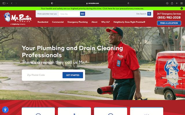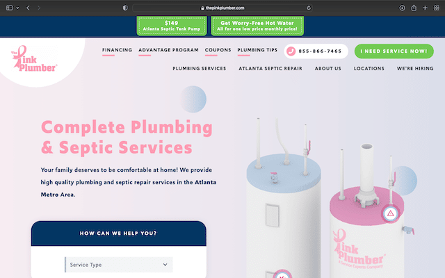 MD Sewer has a simple, quick, and easy-lead generation website that is meant to attract more visitors and increase overall conversions. Also, their site displays the contact number on the header for visitors to locate it easily. Aside from that, its plumbing services are also presented creatively and distinctly. Lastly, this is one of the only websites on this list that gives you a free estimate!