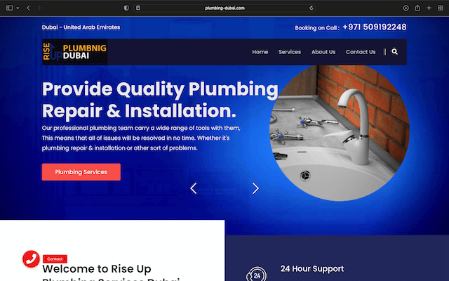 Plumbing Dubai is a fantastic and unique website that provides plumbing services to Dubai's public and private institutions. Its homepage showcases its numbers, the locations they cover, and their services.