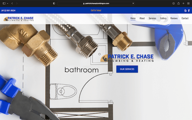 Patrick E. Chase Plumbing's website is simple, with a good, clean design and easily accessible information. When you're looking for information about plumbing repairs, the last thing you want to do is have to jump through hoops to receive the information you need. Patrick E. Chase Plumbing has addressed this by creating a simple design that places all important information within the customer's reach. Their website also includes a gallery of past works and a review page.