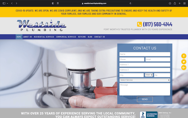 Each of Westside Plumbing's services is clearly defined on the company's website. Everything about the plumber job, that is, faucets repair, toilet installation to trash and drain disposal repair, and everything in between can be found on a dedicated landing page.