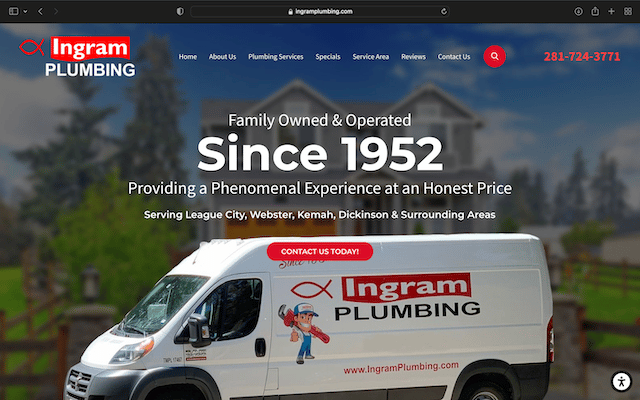 Ingram Plumbing's website is designed with the customer in mind. It loads quickly, presents much-needed information clearly and concisely, and is beautiful to look at!