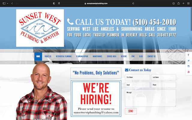 Their plumbing website is easy to navigate, allowing you to quickly get to where you need to go. Their contact information is scattered across the site, so you can contact them with a simple click no matter where you are on the site. Sunset West Plumbing & Rooters outlines their devoted service area so that you can determine if you are within their service area and avoid any doubts. They make it simple to find everything with a single click because of the variety of services they provide.