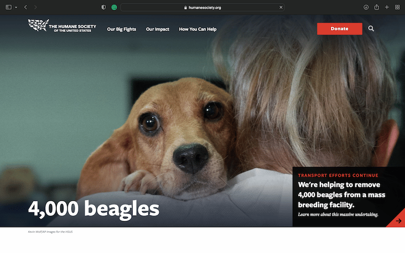 The Humane Society is one of the largest animal protection organizations in the world. The Humane Society's website contains a lot of content, but it is still easy to navigate.